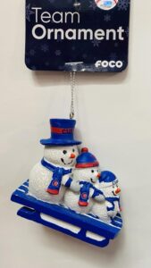 Chicago Cubs Snowmen on snow-slide figurine Ornament. Material: Resin. Dimension: 3 inch x 3 inch